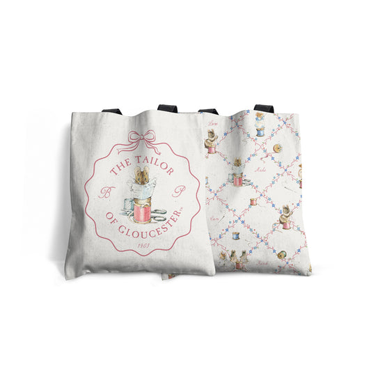 Mouse Sewing with Pink String Tote Bag